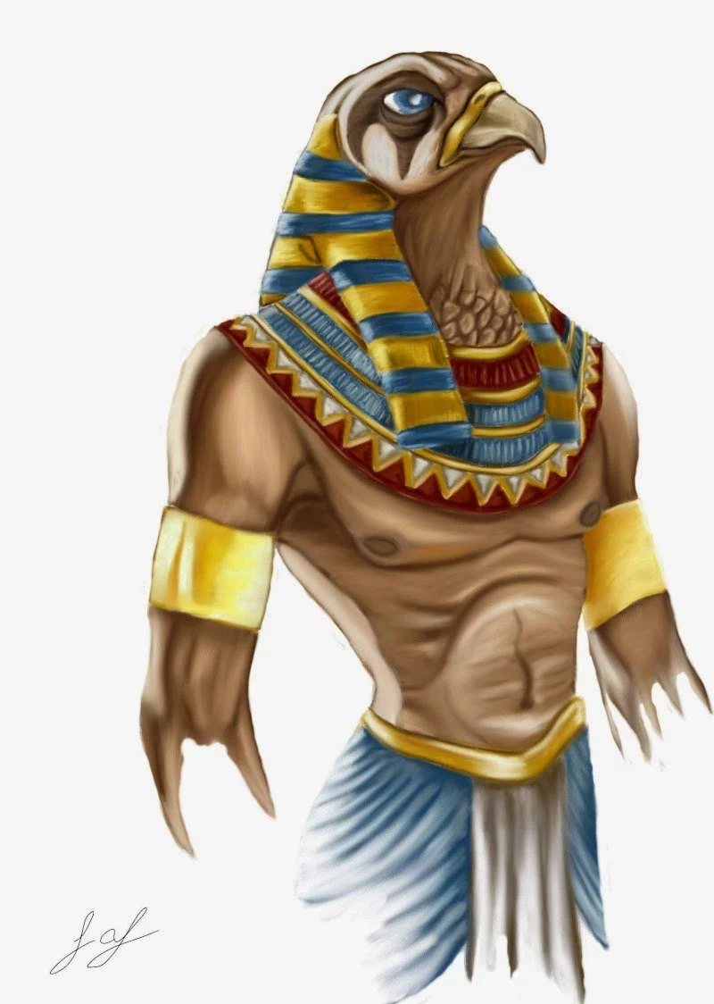 Horus es el hijo de Isis y está encargado de mantener el equilibrio de la naturaleza, proteger la belleza, el arte y la caza. Según el mito, tuvo un amargo enfrentamiento con Seth a consecuencia del cual perdió uno de sus ojos. A la deidad -representada con una cabeza de halcón adornada con una doble corona- también se le creen poderes de clarividencia.