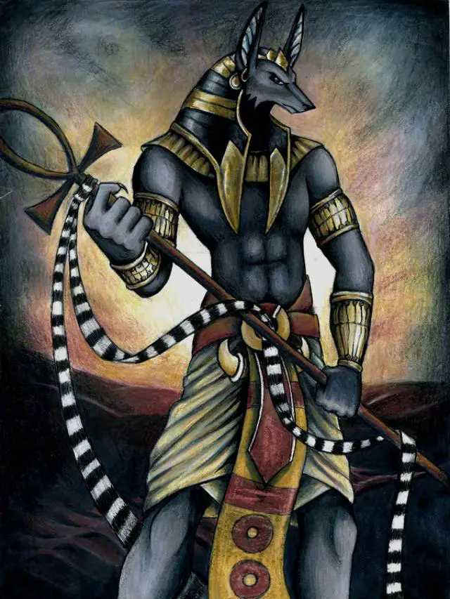 Anubis, representado iconográficamente como un chacal antropomorfo, es el dios del más allá que acompaña al alma en el viaje extracorporal. Su función, de hecho, es proteger a los muertos durante la momificación y transportar sus espíritus a Osiris, ante quien se pesaba el corazón del muerto en espera de una confirmación -o negación- de la vida eterna. La respuesta dependía de una comparación con una pluma (la pluma de Maat): si la balanza se inclinaba hacia el corazón, el alma iría a Ammit.